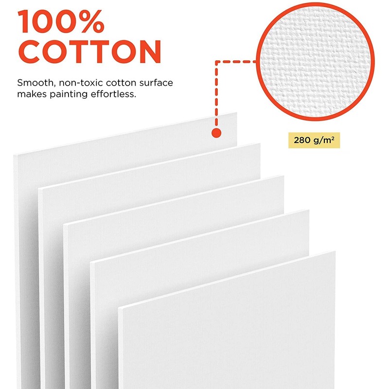 At 280g, our natural duck cotton canvas has a good tooth that allows for easy paint application without sinking or shrinkage, resulting in vivid and long-lasting colours that will stand the test of time. The canvas is laminated onto strong, stable pulp board, providing a sturdy and durable surface that won't warp or bend over time.