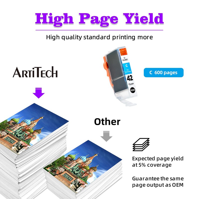 • Our CLI-42 compatible ink cartridges are tested to ensure consistent, quality prints that match the image/text seen on one's printer both at the component level and with print tests.