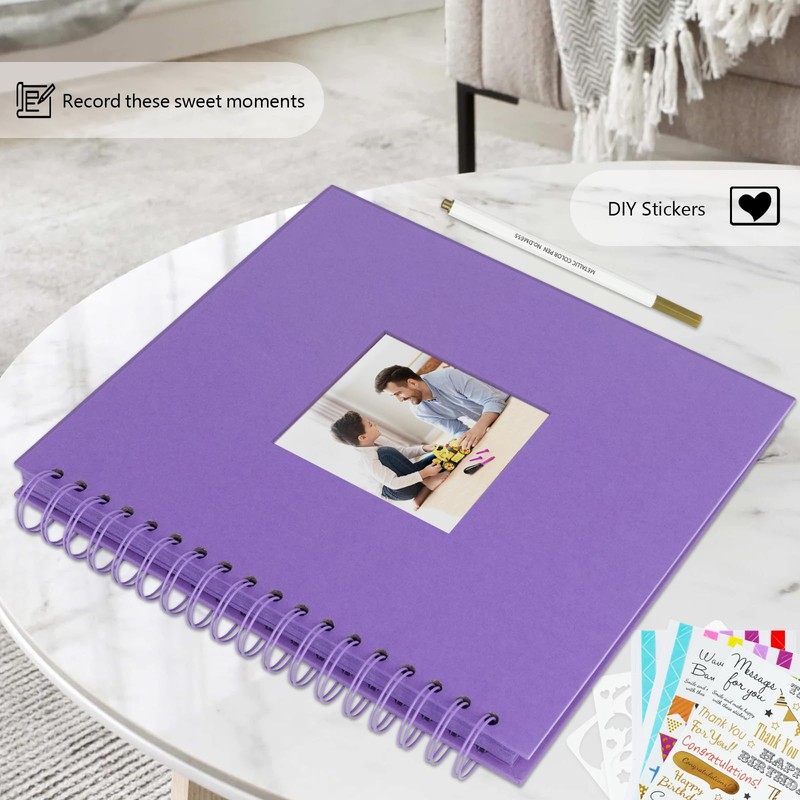 Artmag 8 x 8 Inch DIY Scrapbook Album with Window Hardcover Kraft Blank Paper Scrap Book with 40 Sheets Photo Album for Guest Book, Family Wedding Anniversary (Purple)