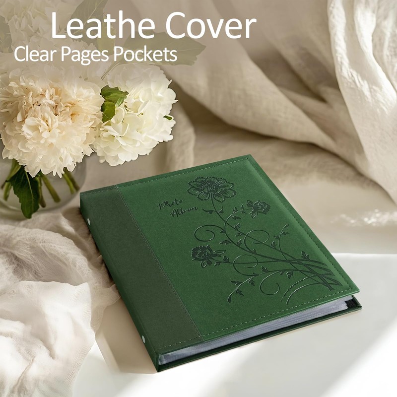 Artmag Photo Album 8x10 2 Packs Clear Pages Leather Cover Slide in Album Each Holds 100 Vertical 8x10 Photo Album Scrapbook Picture Artwork or Postcards Storage (Dark Green)