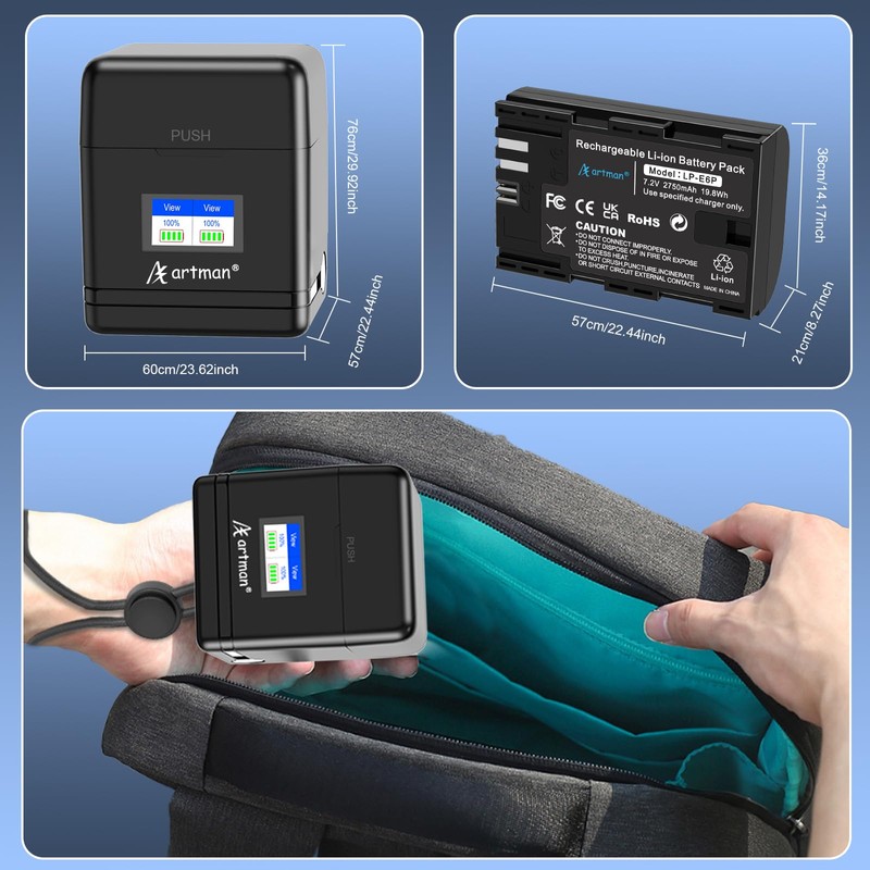 - Perfect Compatibility: Artman newly upgraded LP-E6P replacement battery features 6A max discharge current, it effortlessly powers the latest EOS R5 Mark II, EOS R, R5, R6, R7, 5D Mark II/III/IV, 5Ds, 6D, 6D Mark II, 7D, 7D Mark II, 60D, 70D, 80D, 90D, and more