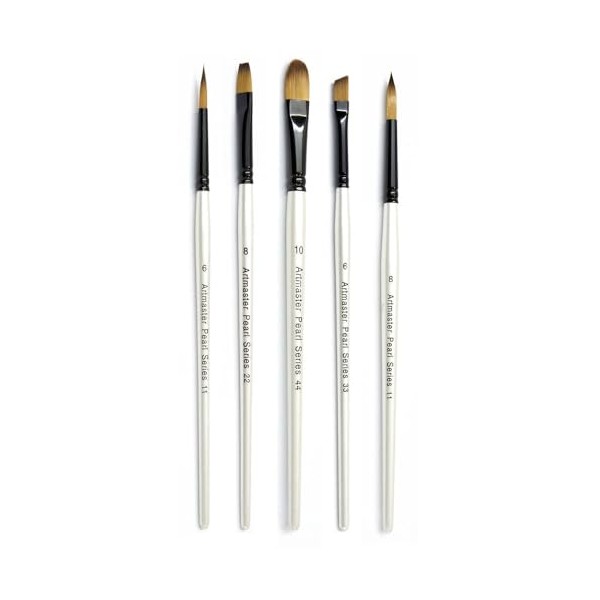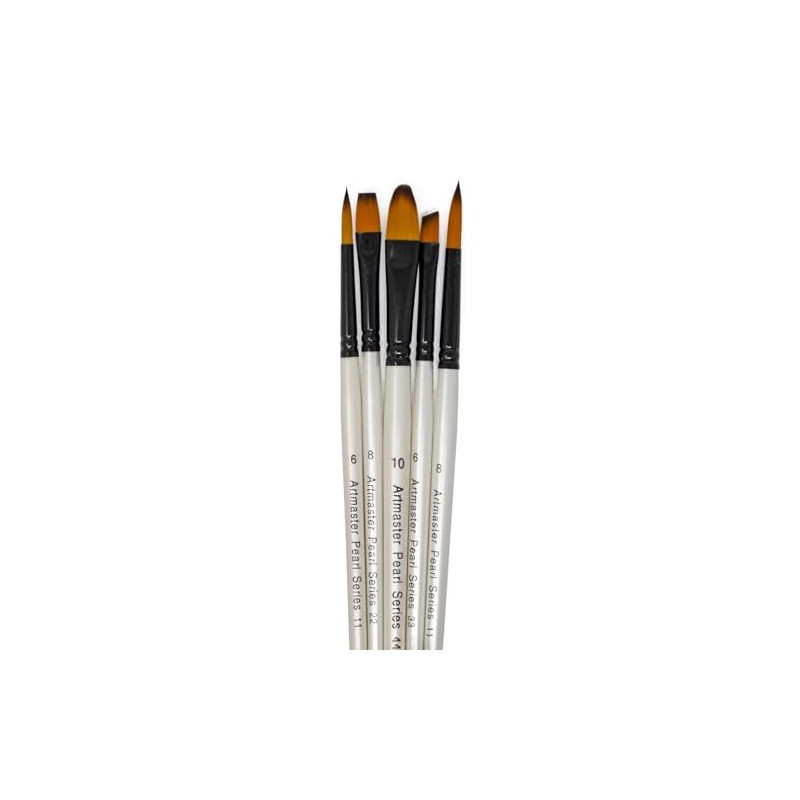 - Set contains 5 brushes in the following designs: Round #6, Round #8, Flat #8, Angle #6 and Filbert #10