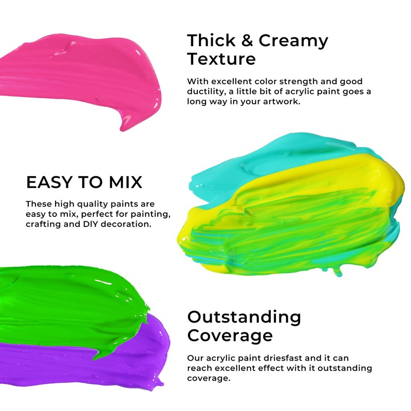 - PREMIUM QUALITY PAINTS: These large bottles acrylic paints dry quickly and firmly adhere to the surface. These high-quality acrylic paints are easy to mix and do not shift or become muddy. They are not cracking or crumbling when the paint dries.
