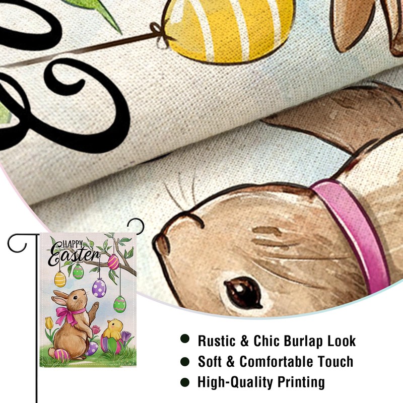 - Produced in Higher Quality -- The Easter garden flags with bunny, chicken, Easter eggs, tree, tulip patterns are printed in premium colorfast permanent dye to create colorful, vibrant, bright designs from creative, original artwork