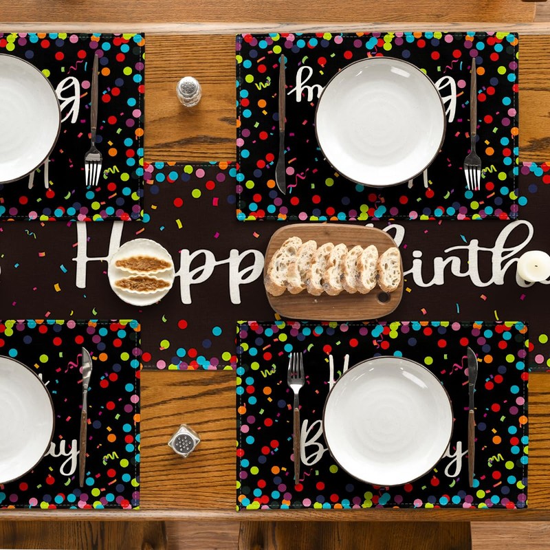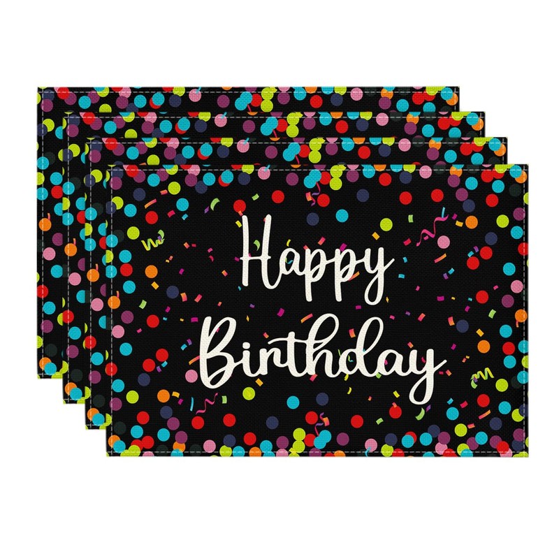 Artoid Mode Black Dots Happy Birthday Place Mats Set of 4 30 x 45 cm Coffee Table Holiday Place Mats Kitchen Party Decoration