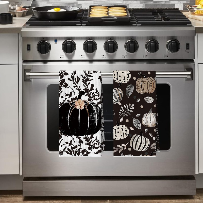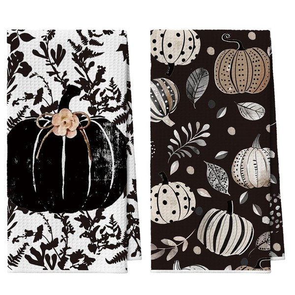 Artoid Mode Black Polka Dot Pumpkin Fall Kitchen Towels Dish Towels, 18x26 Inch Quick Dry Microfiber Cloth Hand Towels for Kitchen Drying Set of 2