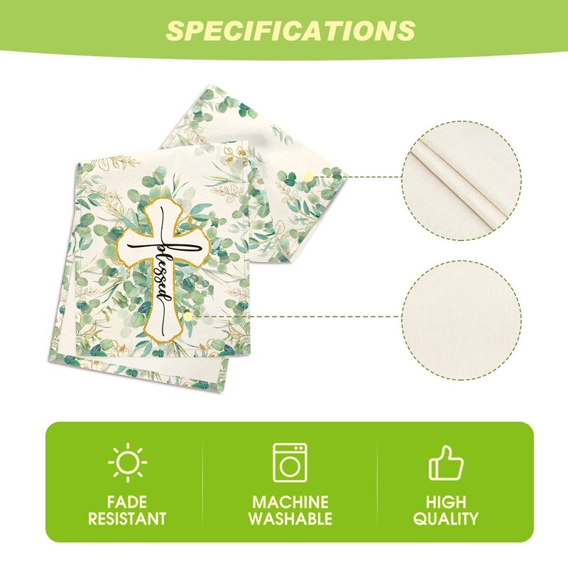 Artoid Mode Blessed Cross Eucalyptus Table Runner, Spring Summer Seasonal Kitchen Dining Table Decoration for Home Party Decor 13 x 48 Inch