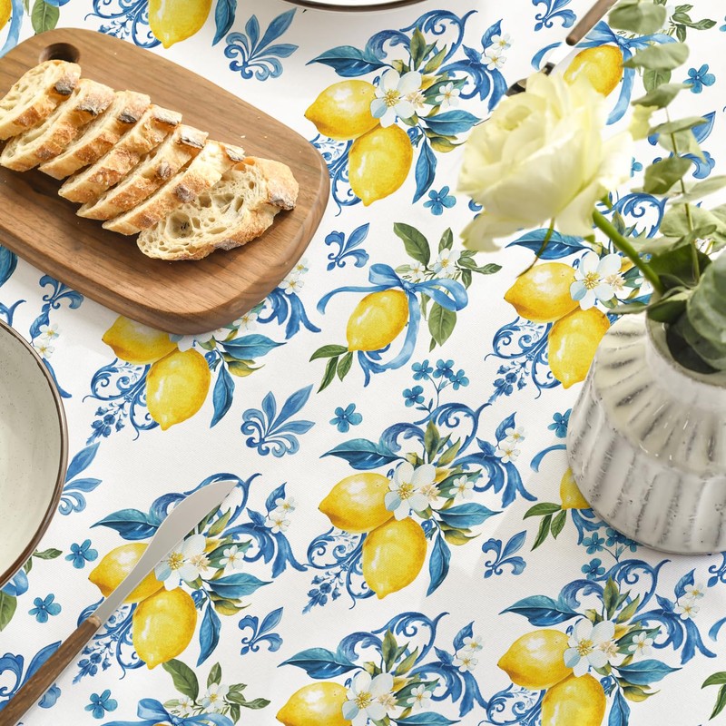 Artoid Mode Blue Lemon Iris Summer Table Cloth, Rectangular 140x220 cm Spring Decorative Table Cover Protector For Party Home Table Decorations