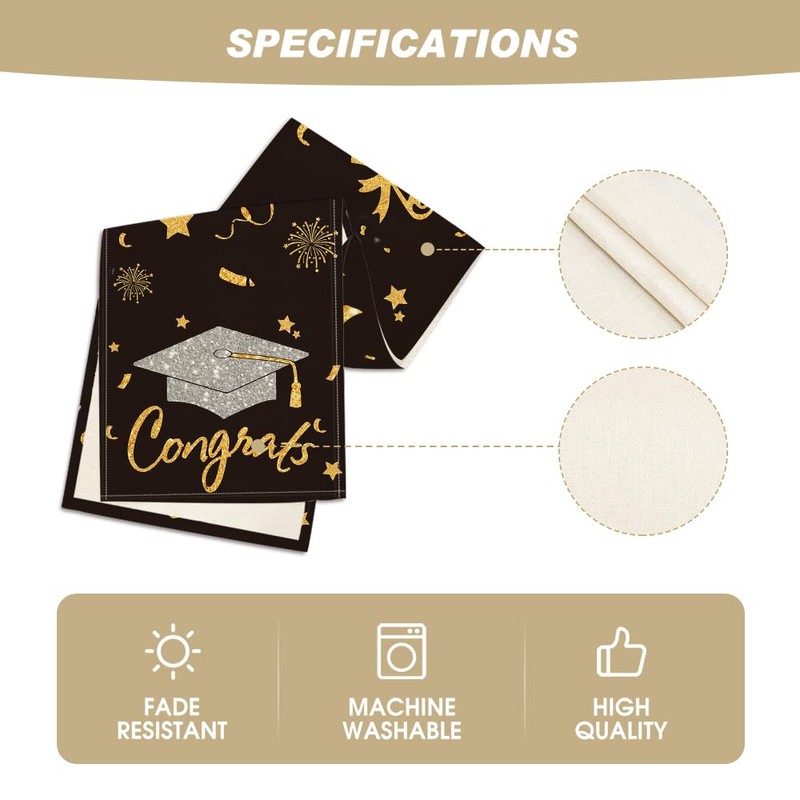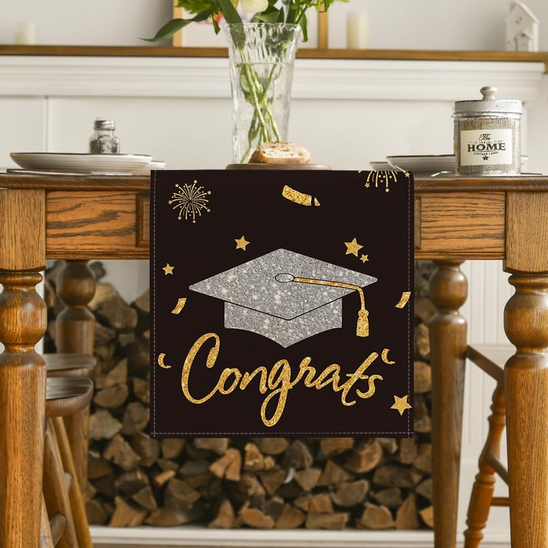 Artoid Mode Congrats Table Runner Diploma Cap, 2023 Graduation Holiday Kitchen Dining Table Runners for Home Party Decor 13 x 36 Inch
