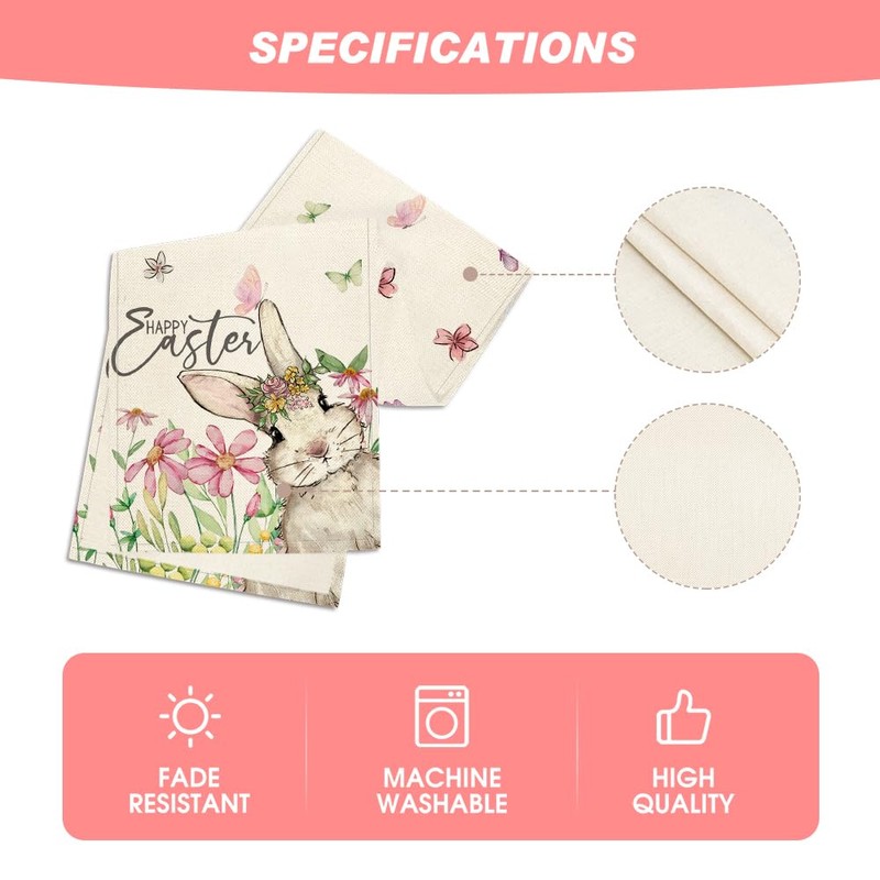 Artoid Mode Daisy Bunny Rabbit Easter Table Runner, Seasonal Spring Kitchen Dining Table Decoration for Home Party Decor 13x36 Inch