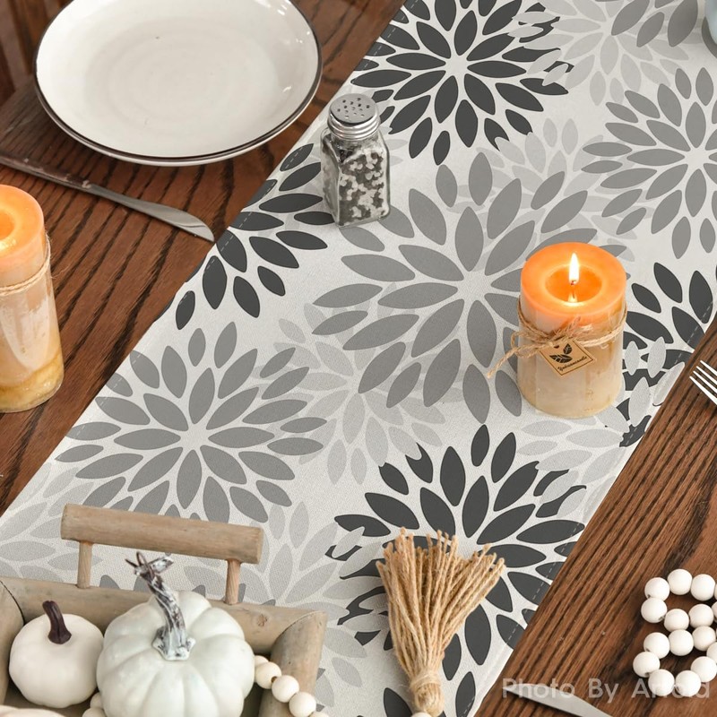 Artoid Mode Flowers Grey Dahlia Autumn Table Runner, Seasonal Summer Kitchen Table Decoration, Indoor, Holiday, Party Decor, 40 x 100 cm