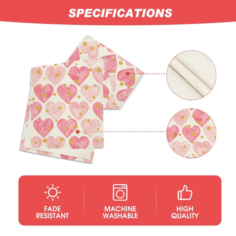 Artoid Mode Golden Pink Love Valentine's Day Table Runner, Seasonal Anniversa...