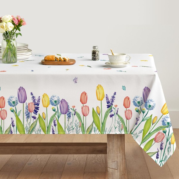 Artoid Mode Lavender Tulip Leaves Spring Table Cloth, Rectangular 140x180 cm Summer Decorative Table Cover Protector For Party Home Table Decorations