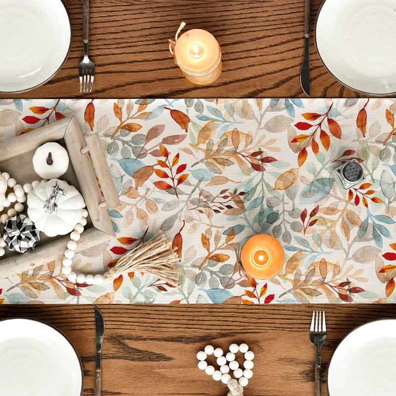 Artoid Mode Leaves Autumn Table Runner, Seasonal Fall Kitchen Dining Table Decoration for Home Party Decor 40x140 cm
