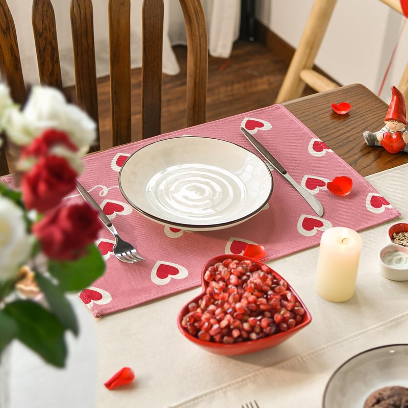 Artoid Mode Love Heart Pink Valentines Day Placemats Set of 4, 12x18 Inch Wedding Anniversary Table Mats for Party Kitchen Dining Decoration