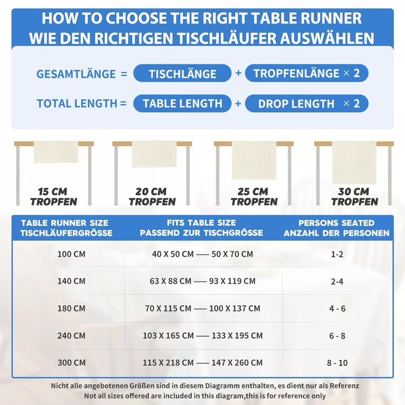 - FITS TABLE SIZE This table runner is 40 x 180 cm and is suitable for a table that can seat 4-6 people. Match your table better and give you a delightful dining experience
