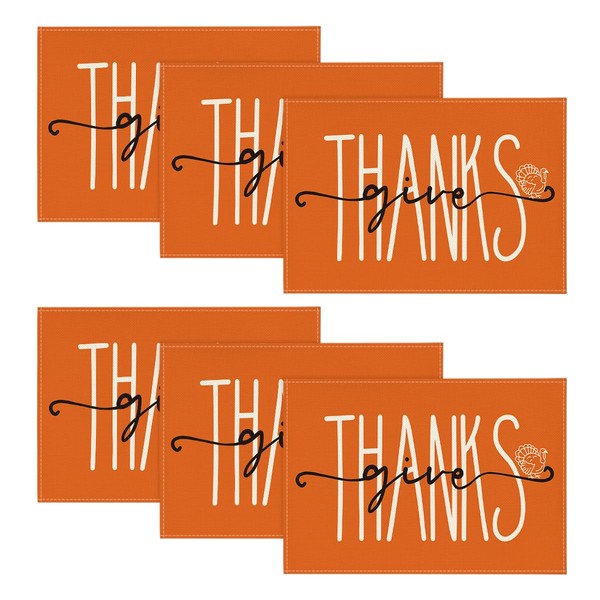 Artoid Mode Pumpkins Give Thanks Turkey Fall Placemats Set of 6, 12x18 Inch Pumpkin Pie Thanksgiving Table Mats for Party Kitchen Dining Decoration