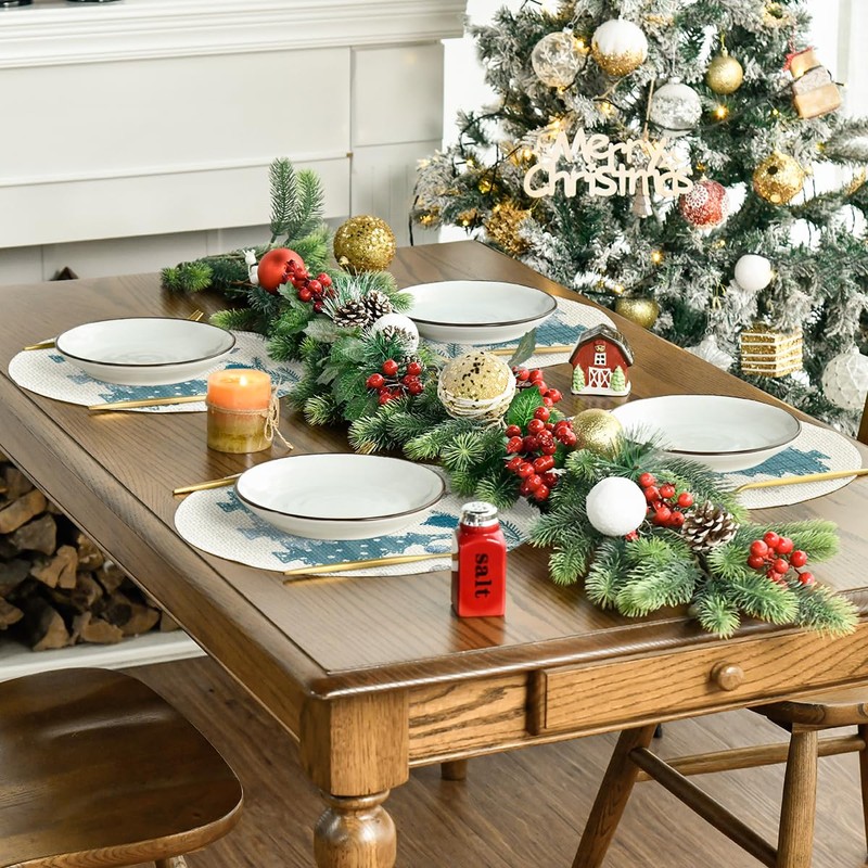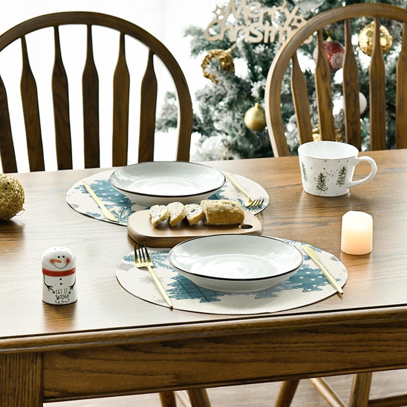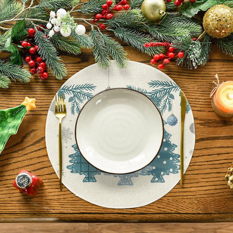 Artoid Mode Red Pine Trees Christmas Round Place Mats Set of 4 37 cm Winter Xmas Place Mats Kitchen Party Decoration