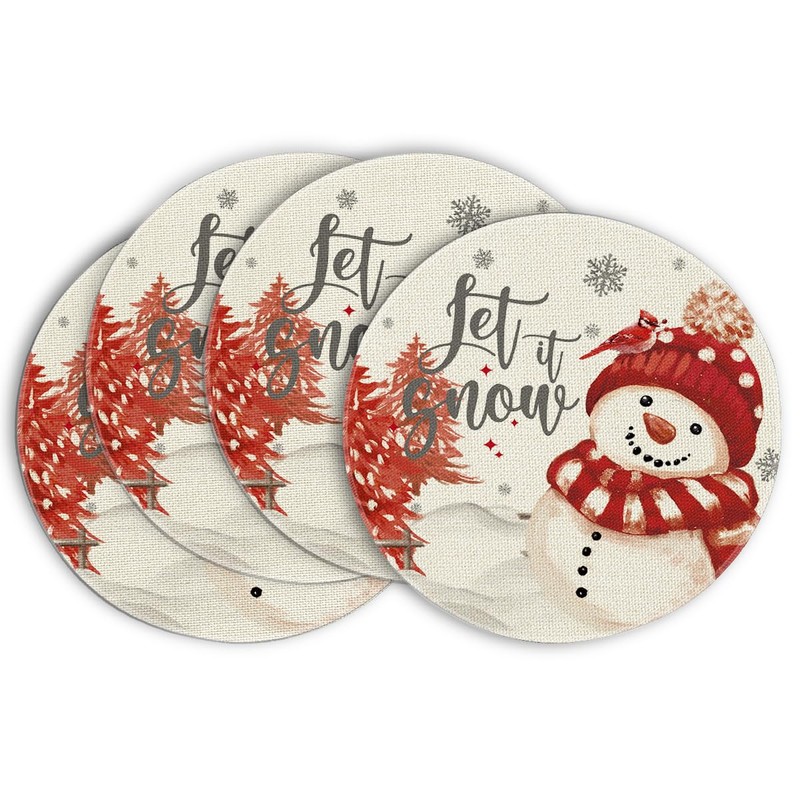 Artoid Mode Red Snowman Let It Snow Xmas Tree Merry Christmas Round Placemats Set of 4, 14 Inch Winter Round Table Mats for Dining Decoration