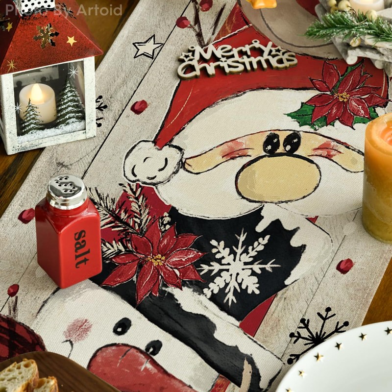 Artoid Mode Reindeer Santa Claus Snowflake Christmas Table Runner, Seasonal Winter Kitchen Dining Table Decoration for Home Party Decor 13x90 Inch