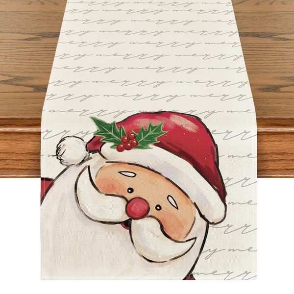 Artoid Mode Santa Claus Christmas Table Runner, Winter Xmas Kitchen Table Decoration Indoor Holiday Party 40 x 180 cm