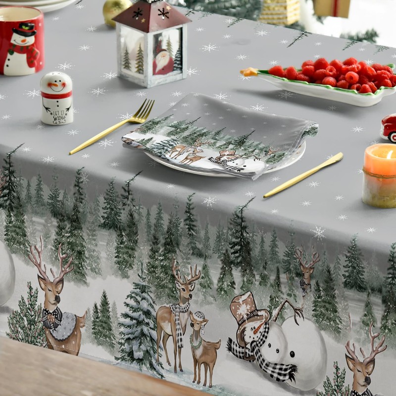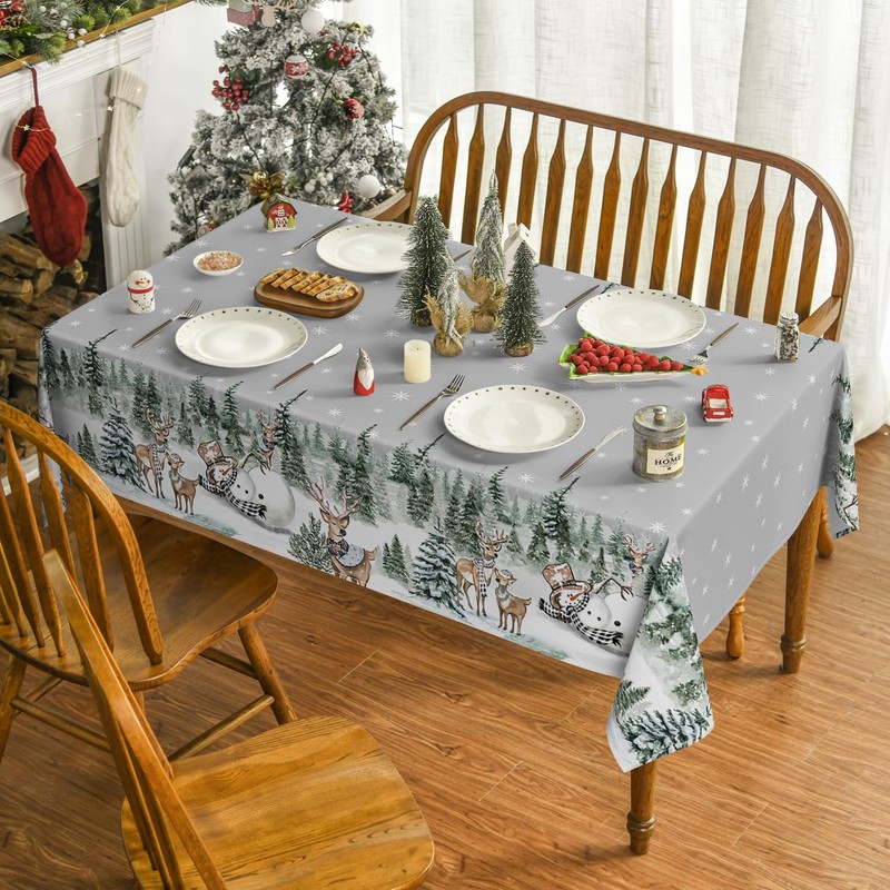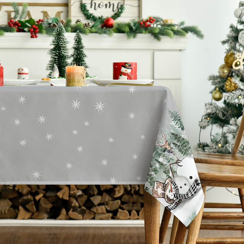 Artoid Mode Snowflakes Trees Snowman Deer Christmas Table Cloth, Rectangular 140x200 cm Xmas Table Cover Protector For Party Home Table Decorations