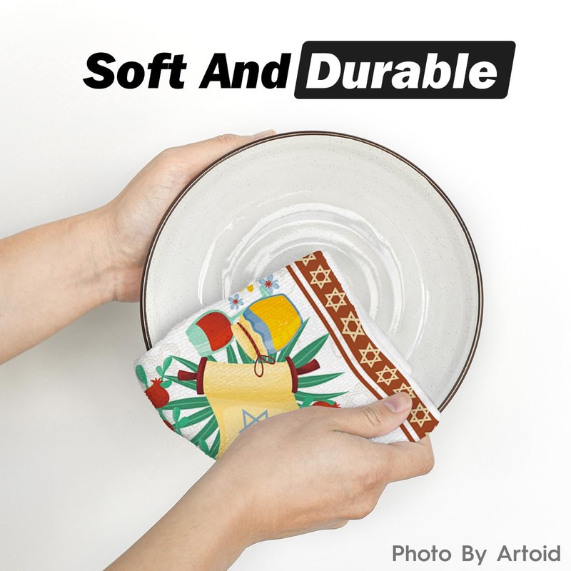 Artoid Mode Star Honey Rosh Hashanah Kitchen Towels Dish Towels, 18x26 Inch Shana Tova Decor Hand Towels Set of 2