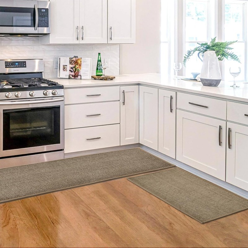 - NO-SLIP KITCHEN MAT: Open rug fully and place on even, flat, dry floor. The super non-slip rubber backing provides safety for your family, It's light and the grip effect can keep the kitchen mat fixed and non-slip during use.
