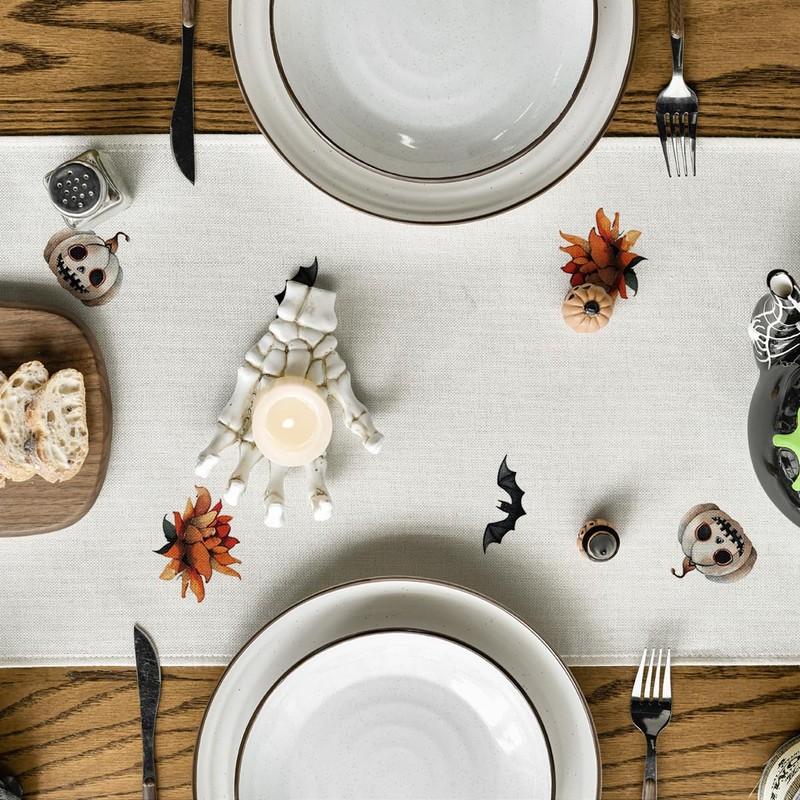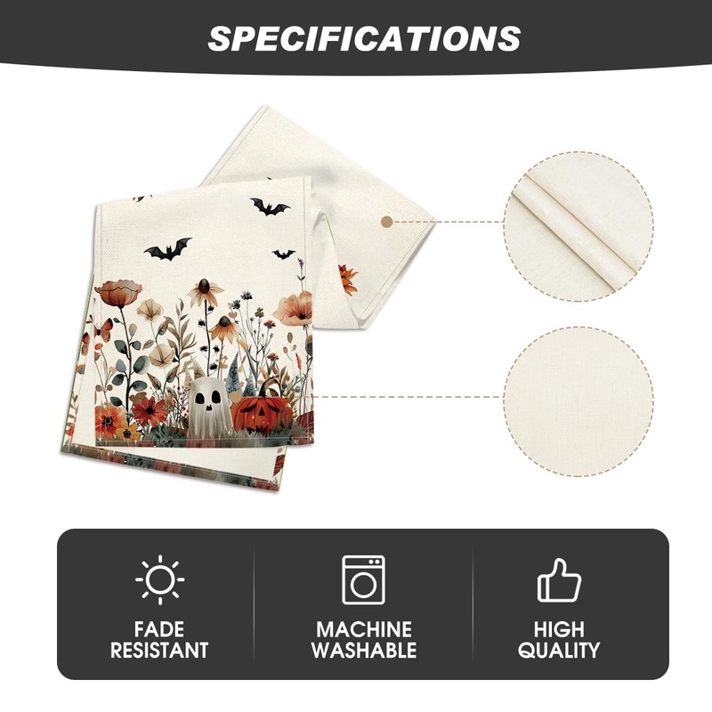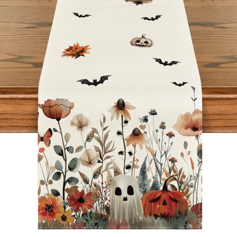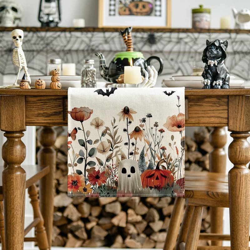 Artoid Mode Wild Flowers and Weeds Ghost 210 GSM Halloween Table Runner, Spooky Kitchen Dining Table Decoration for Home Party Decor 13x48 Inch