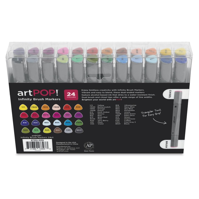 artPOP! Infinity Brush Markers (24 Pack) - Premium Dual Tip Alcohol Markers Set with Brush & Chisel Tips - Professional Art Markers for Artists, Designers & Hobbyists - Ergonomic Design