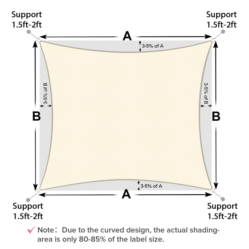 - Measurement: Measure the distance between D-rings when stretched, leaving 1.5 to 2 feet for the hardware kit. The sail may vary by ± 4 inches. Hardware kit sold separately.