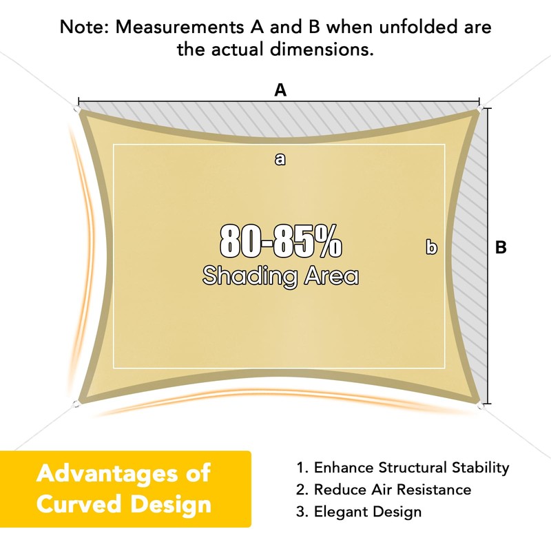 Artpuch Waterproof Sun Shade Sail, 10'x10' Sand Rectangular, UV Resistant Rain Canopy, Curved Edges Shade Cloth for Outdoor Patio, Deck, Yard