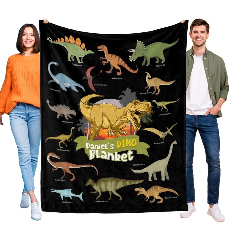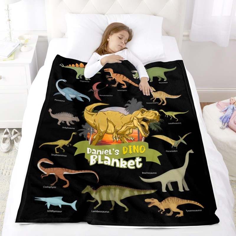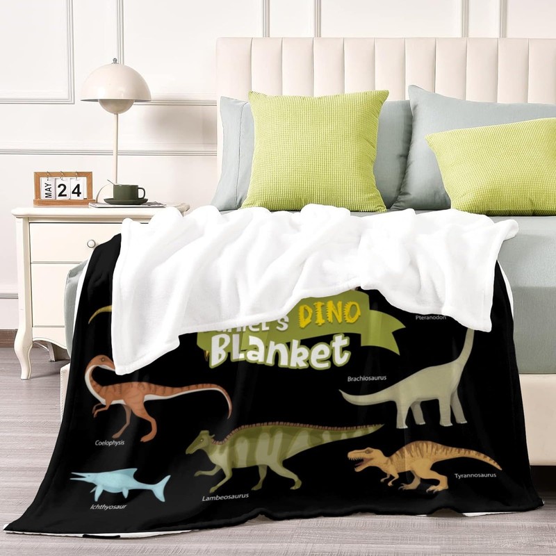 Artsadd Custom Dinosaur Blankets for Baby Boys Girls - Personalized Baby Blankets with Name for Kids Newborn Toddlers Customized Dino Throw Blanket Gift for Boys Teens Christmas Birthday 40"x50"