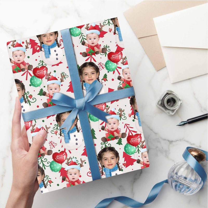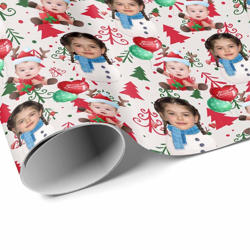 Artsadd Personalized Christmas Wrapping Paper for Kids Adults Customized Photo Gift Wrapping Paper Christmas Custom Christmas Gift Wrap Paper Roll for Boyfriend Girlfriend Family Party Ornaments