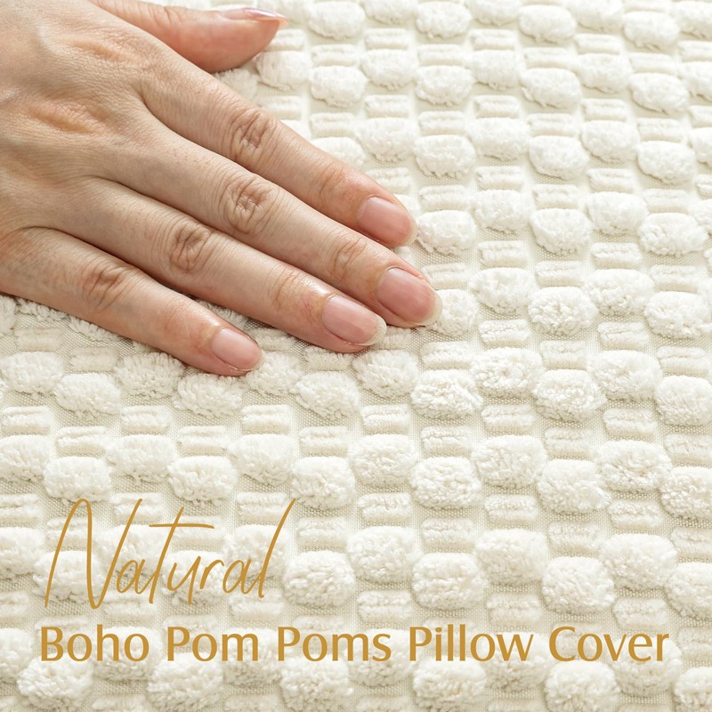 Artscope Pom Poms Decorative Corduroy Cushion Covers 40x60cm Super Soft Boho Striped Lumbar Pillow Covers Case Geometric for Sofa Couch Bedroom Car Decor Set of 2, Cream Beige