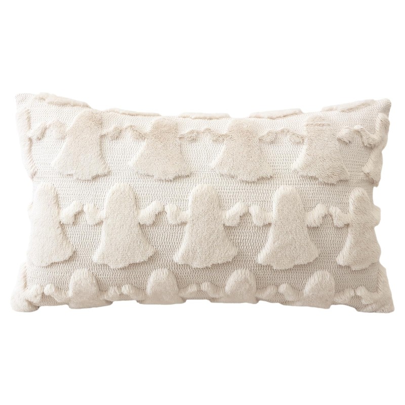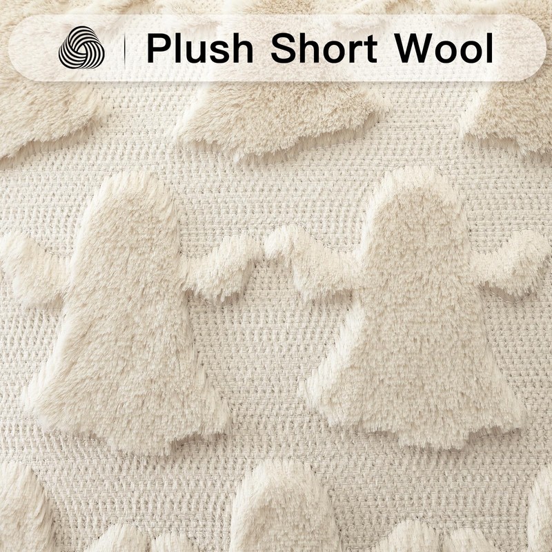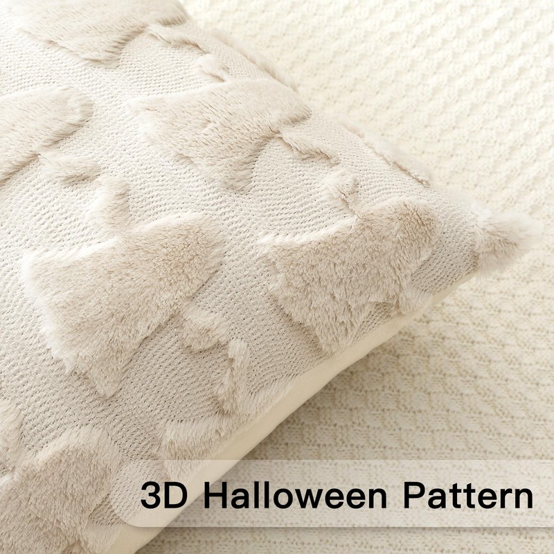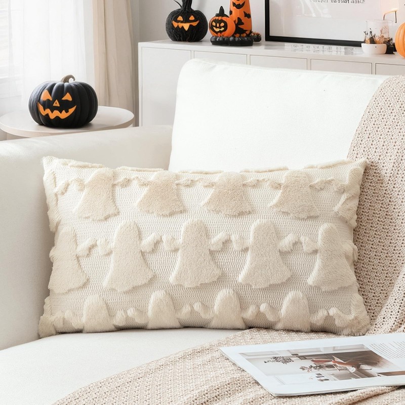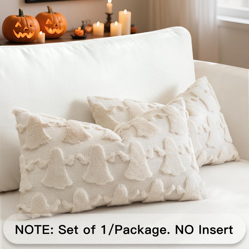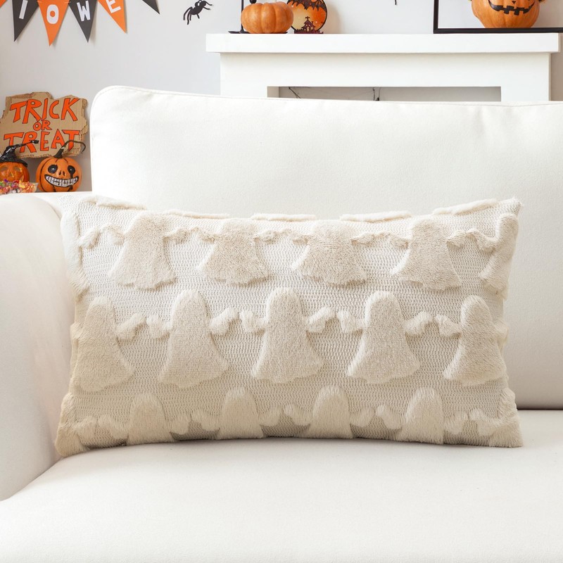 Artscope Set of 1 Ghost Cushion Cover Halloween Throw Pillow Covers for Sofa Couch Bed Living Room Soft Plush Short Wool Velvet Farmhouse Pillowcase for Thanksgiving 30x50cm Cream Beige