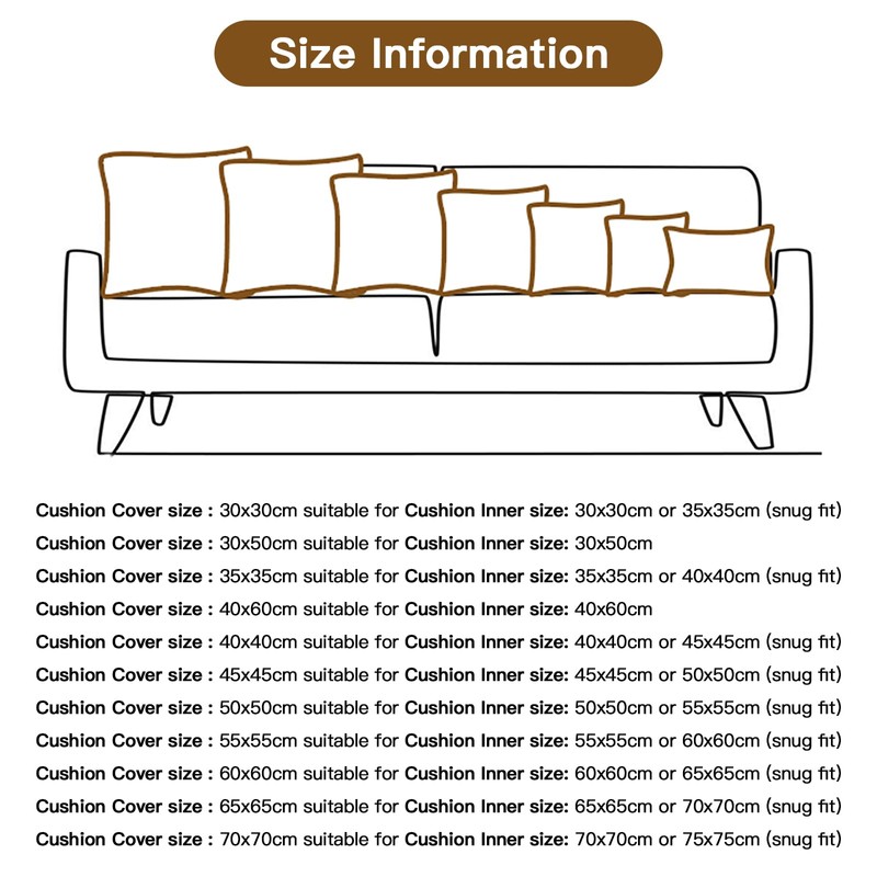 - Size: 45 x 45 cm. These cushion covers have a variety of sizes and colours to meet your different needs. (Due to manual measurement, there may be 1-2 cm error)