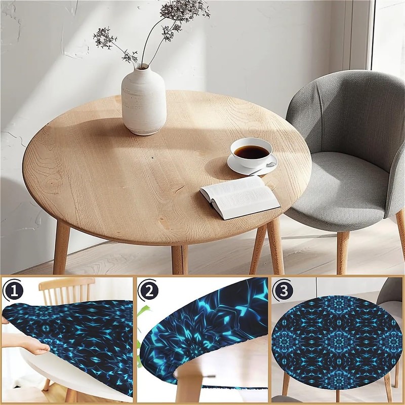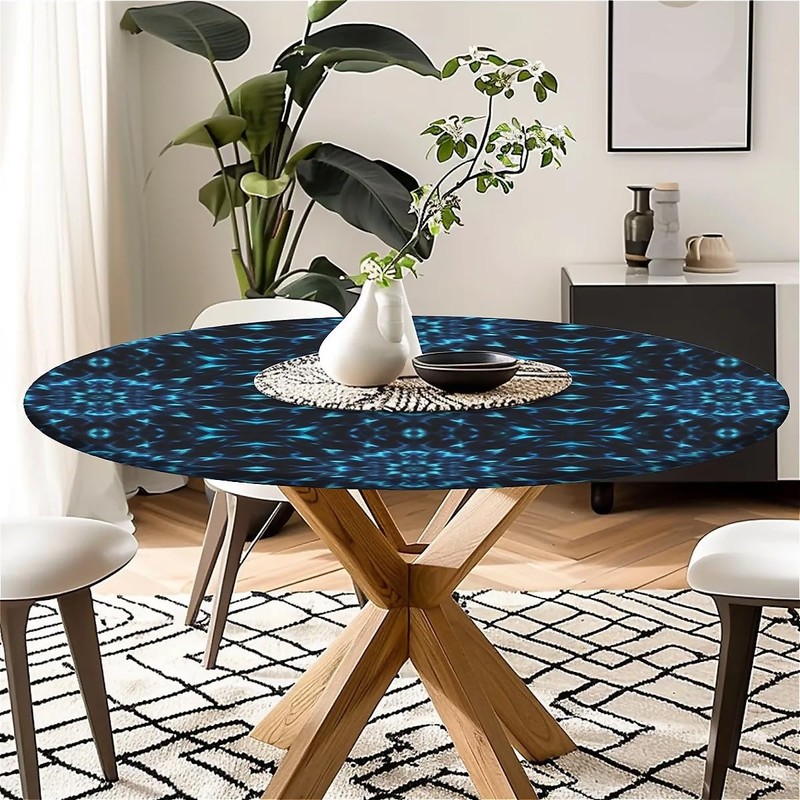 artslion Outdoor Round Tablecloth with Elastic Band 36 In-90cm Elastic Garden Tablecloth with Blue Coil Pattern