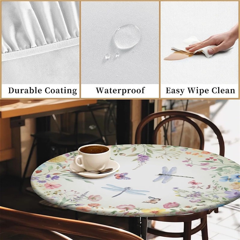artslion Outdoor Round Tablecloth with Elastic Band 44In-110cm Elastic Garden Tablecloth with Dragonfly Pattern