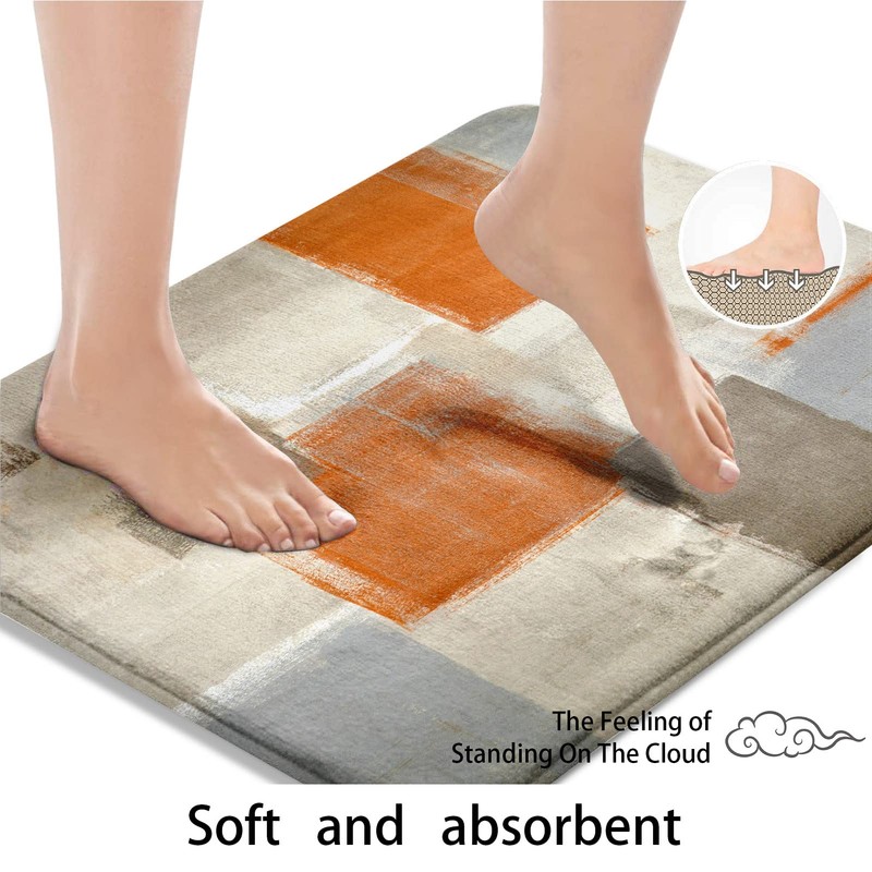 ArtSocket Abstract Orange Bathroom Set with Shower Curtain and Rugs Accessories, Brown and Gray Modern Shower Curtain, Orange Bathroom Decor 4 Pcs