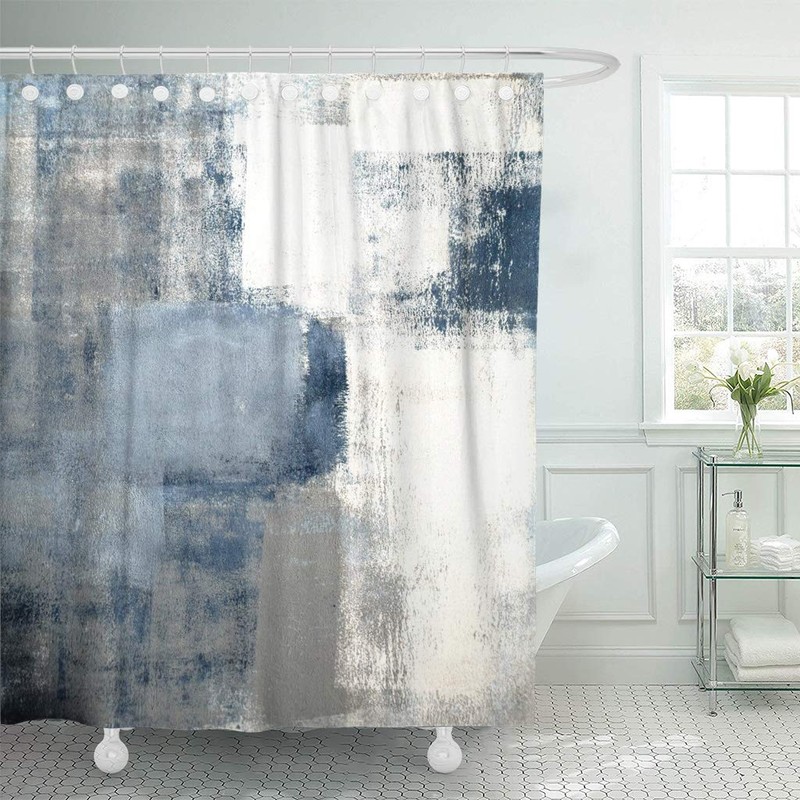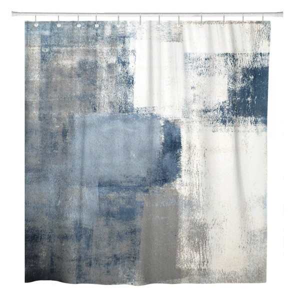 ArtSocket Shower Curtain Gray Contemporary Blue and Grey Abstract Painting Home Bathroom Decor Polyester Fabric Waterproof 72 x 72 Inches Set with Hooks