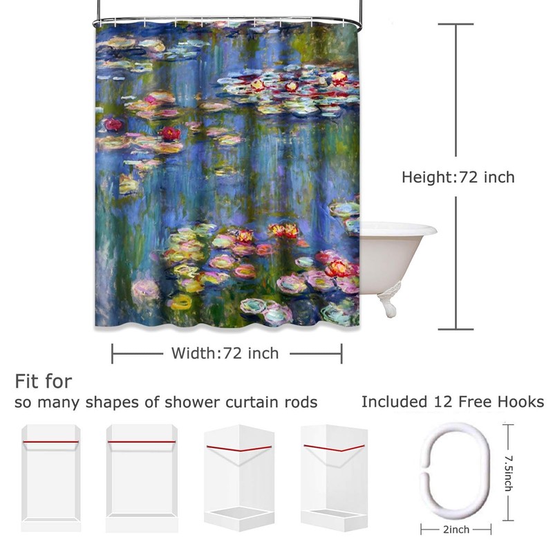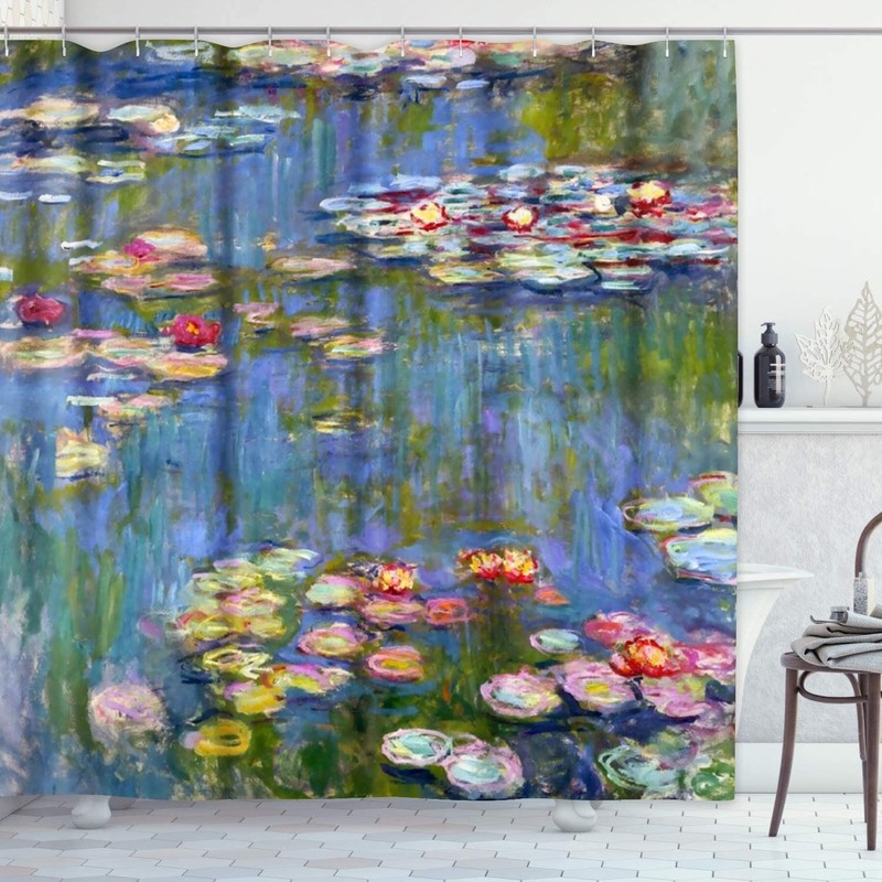 ArtSocket Shower Curtain Waterlilies Water Lilies 1916 Lilly Lillies Claude Monet Masterpiece Home Bathroom Decor Polyester Fabric Waterproof 72 x 72 Inches Set with Hooks
