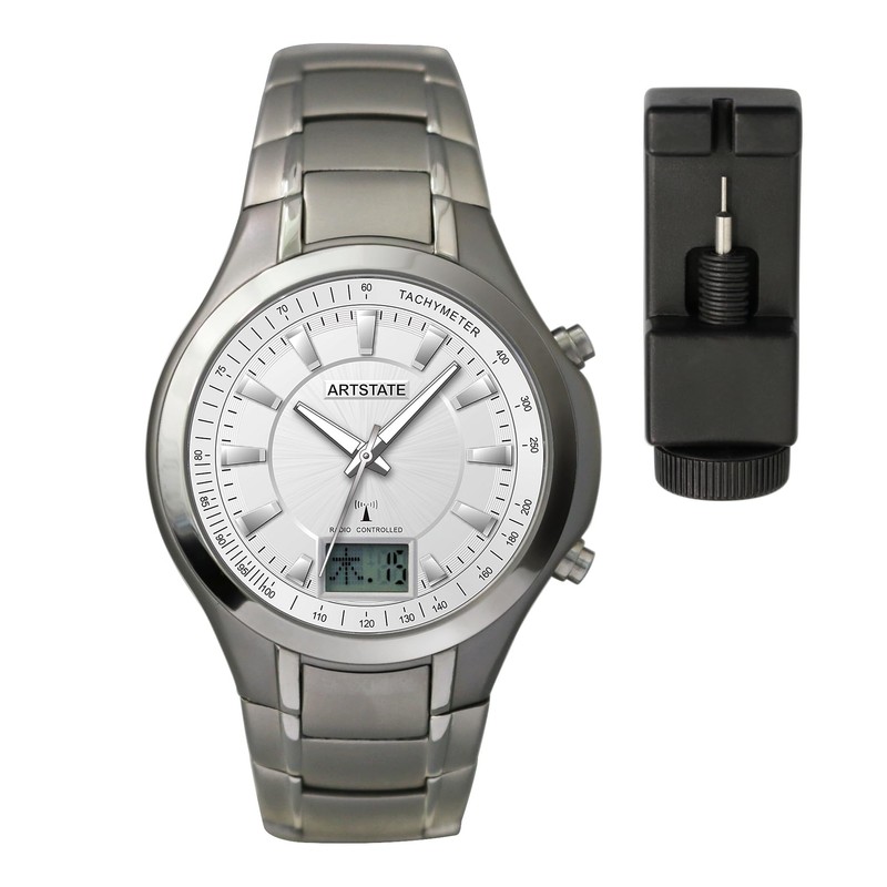 ARTSTATEのラジオコントロール腕時計は、洗練された機能性とエレガントなデザインを兼ね備えた逸品です。シルバーのステンレススチールケースとバンドが高級感を演出し、ビジネスからカジュアルまで幅広いシーンで活躍します。文字盤には見やすいアナログ表示と、便利なデジタル表示を組み合わせ、実用性を追求しました。ラジオコントロール機能により、常に正確な時刻を表示。堅牢なステンレススチールバンドは耐久性に優れ、長期間の使用に耐えます。スタイリッシュなフォルムと実用的な機能の調和が、現代のライフスタイルにマッチする一本です。