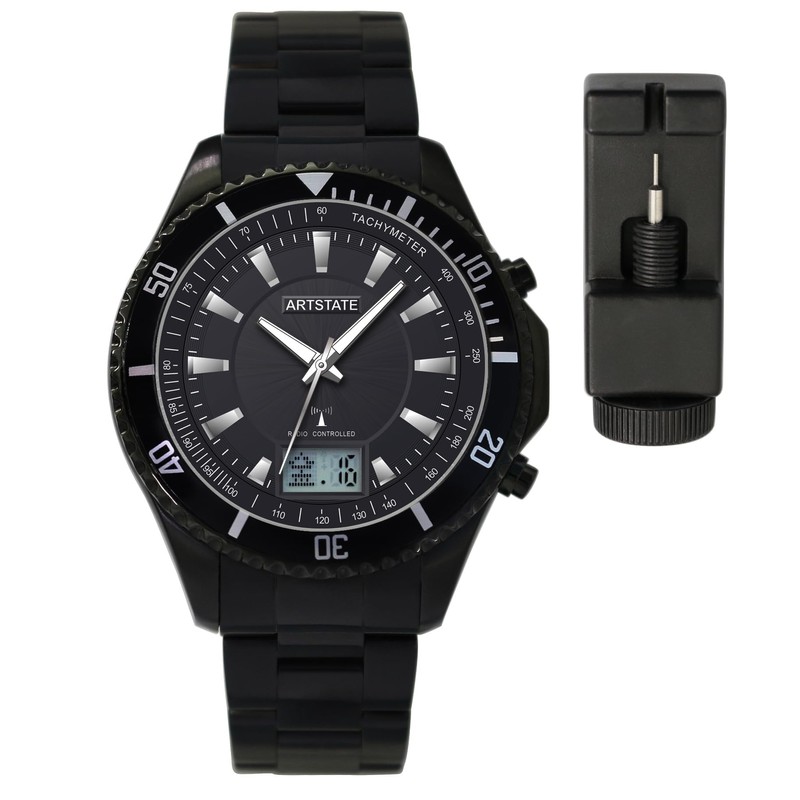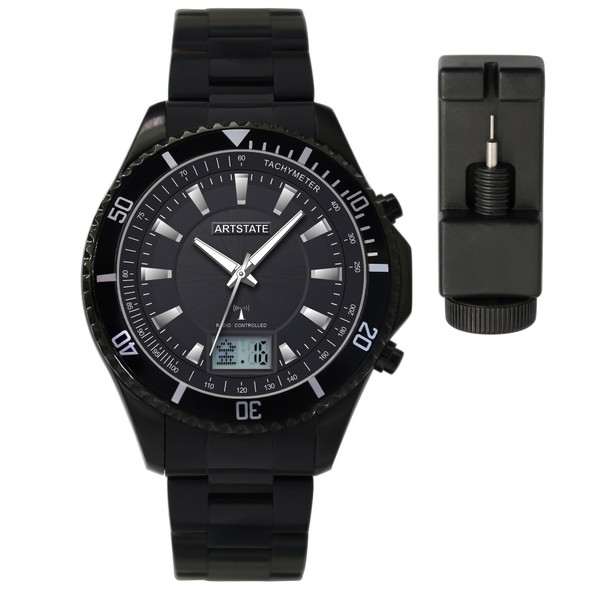 [ARTSTATE AS3294A ] 腕時計 メンズ 電波時計, IPブラックメッキ, 日付と曜日の表示,10気圧防水機能,長いバッテリー寿命