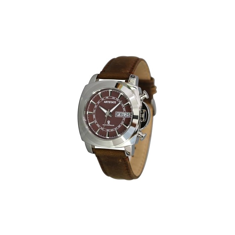 [ARTSTATE W335D] 腕時計 メンズ 電波時計, ブラウンレザーストラップ, 日付と曜日の表示,長いバッテリー寿命
