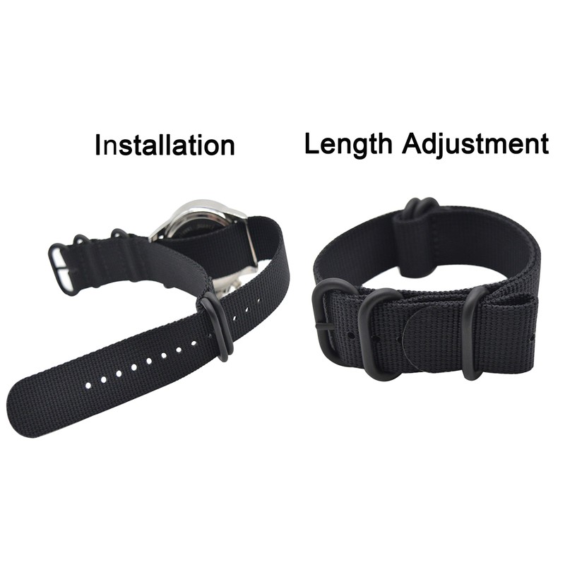 • 3: PERFECT THICKNESS & LENGTH - With 1.5mm thick nylon material, it will keep the watch to your wrist better, not slip. It is designed to fit nearly all wrists with the length of 11 inches. If the band is longer than desired, the free end can be folded neatly back into the loop