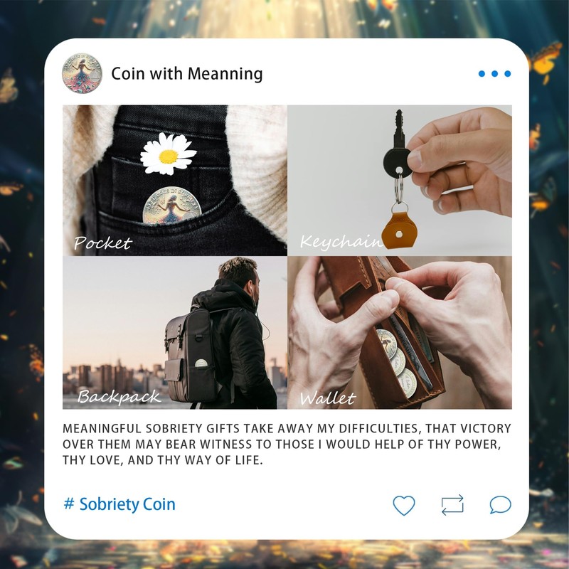 - 💃Elegance Sobriety: The front of 8 year sobriety coin shows a graceful yet strong woman, symbolizing how sobriety isn’t just about beating addiction but also finding inner strength and freedom. The butterflies around her stand for the beautiful transformation, new beginnings, and fresh start that come from overcoming tough times or addiction. The glowing light in the aa coins background represents the brighter, more hopeful future waiting for those on the road to recovery