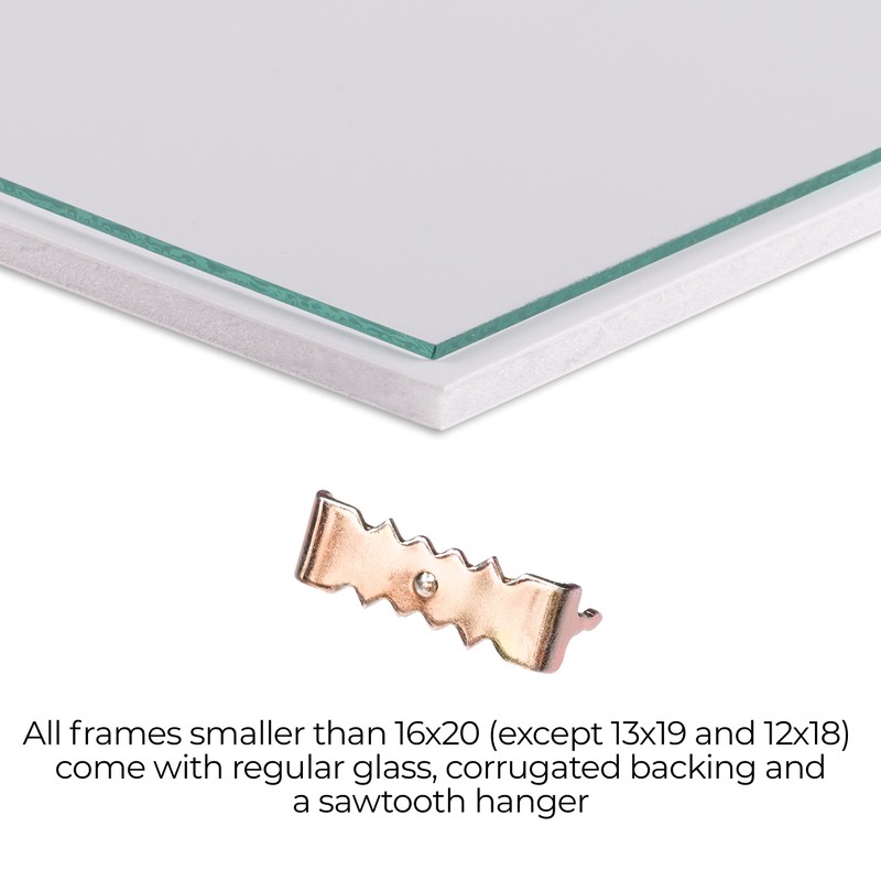 - Comes with Foam Backing 3/16 inch, Regular Glass and a a sawtooth hanger for wall mounting!