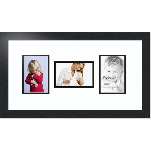 ArtToFrames Double-Multimat-113-61/89-FRBW26079 Collage Photo Frame Double Mat with 3-4x6 Openings and Satin Black Frame, Super White, 3-4x6
