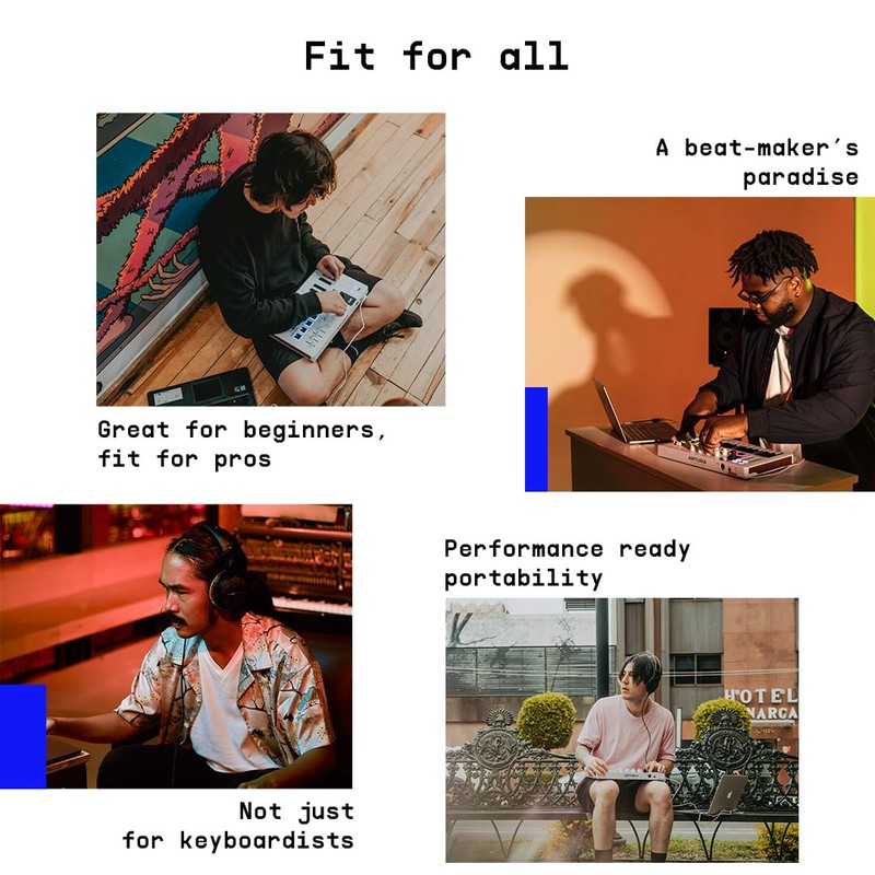 - YOUR OWN FLOW: MiniLab 3 is a simple keyboard controller that adapts to your needs, style and workflow so you can make music the way you like it. You can control instruments, mute tracks, play your 8-pad drums and adjust your 4 faders so smoothly that you will forget you have a mouse. Connect it, discover new sounds, enjoy the premium touch-sensitive keys and make your music more direct than ever!